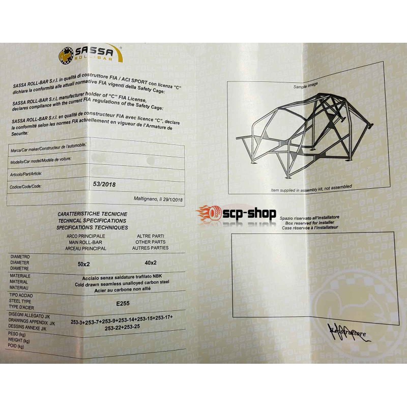Sassa est une marque spécialisée dans les arceaux et reconnu comme constructeur officiel par la FIA, gage de qualité et de savoir faire depuis de nombreuses années.