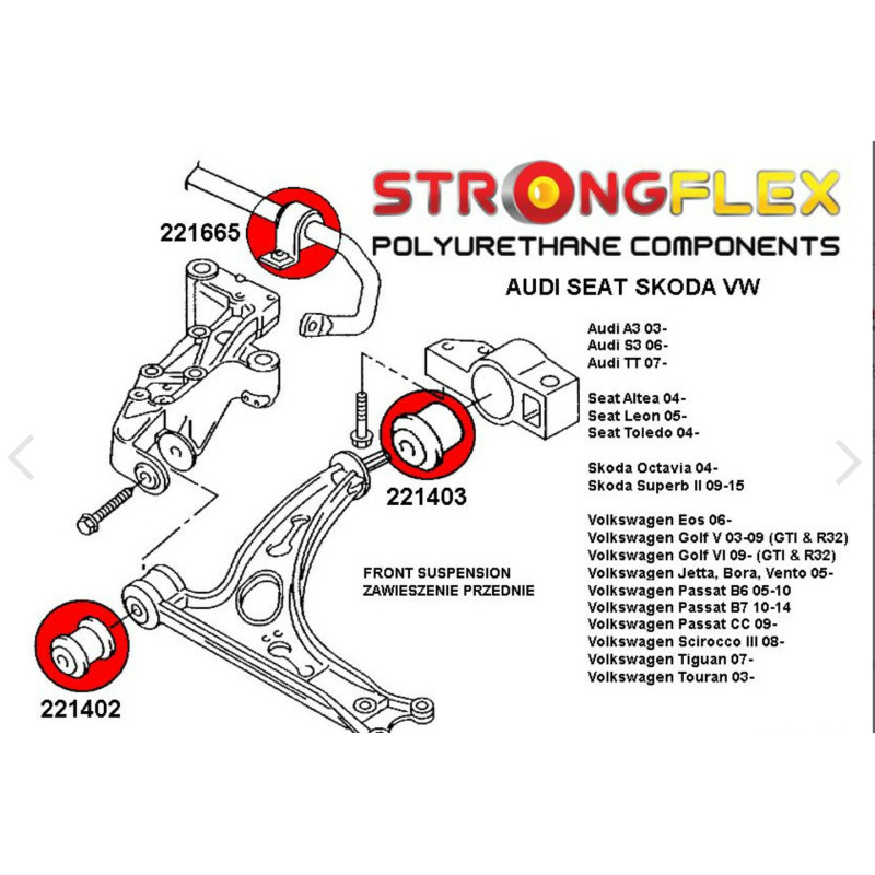 Kit complet silentblocs AUDI A3 8P dureté 90 SHA